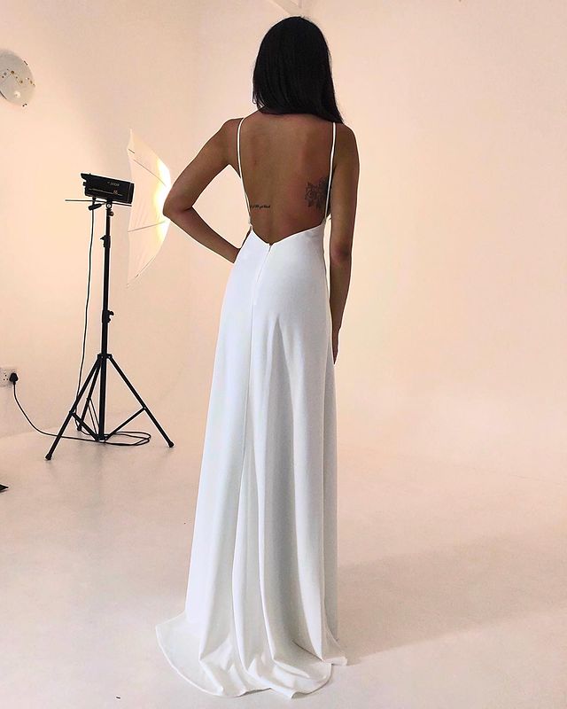 Simple Cowl Neck White Long Prom Dresses Cross Back Evening Party Dresses