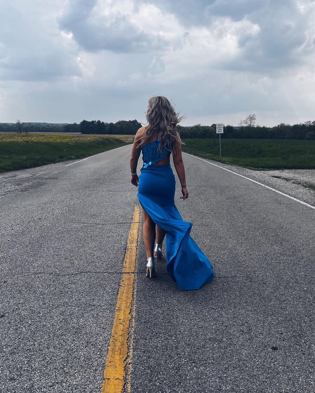 Cute Mermaid One Shoulder Royal Blue Long Prom Dresses with Beading