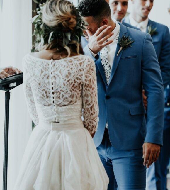 Vintage Two Piece Wedding Dress with Half Sleeves Bridal Gown