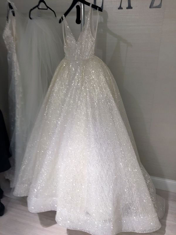 Sparkly V Neck Sequined Ivory Wedding Dresses Bridal Gowns