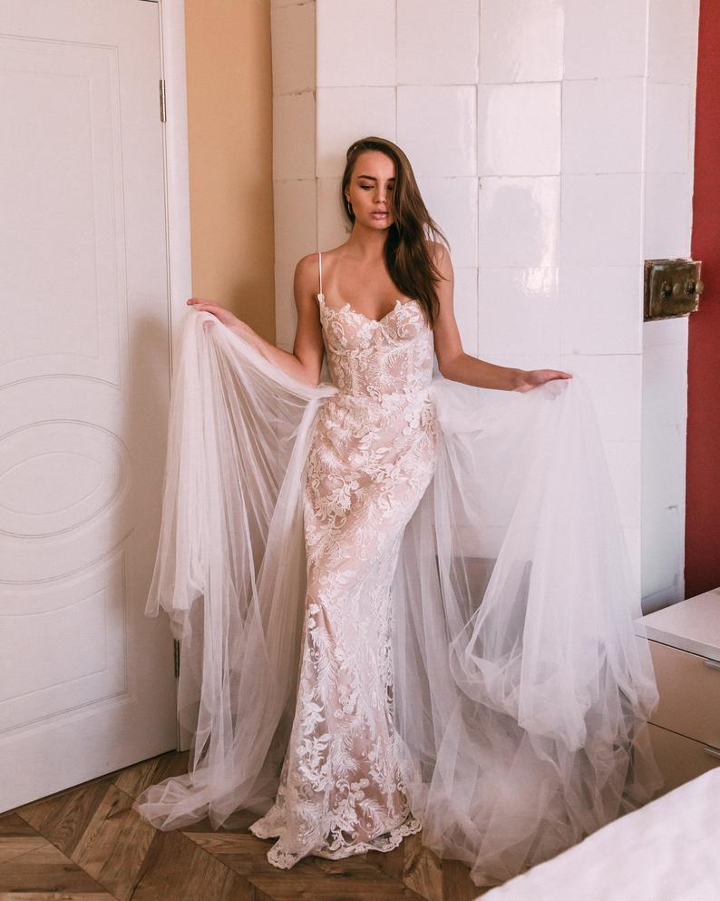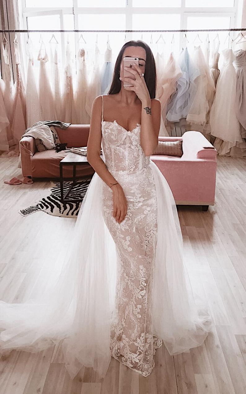 Marvelous Mermaid Sweetheart Spaghetti Straps Lace Wedding Dresses with Tulle