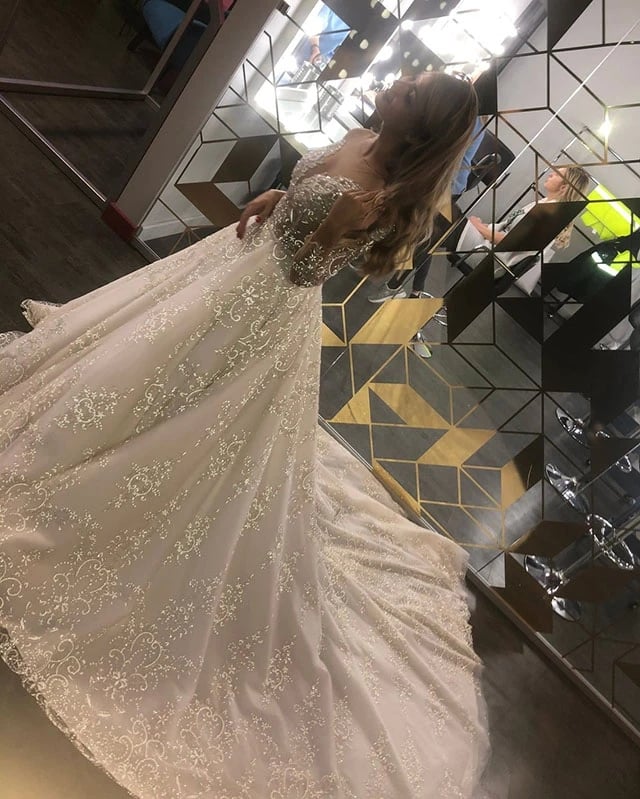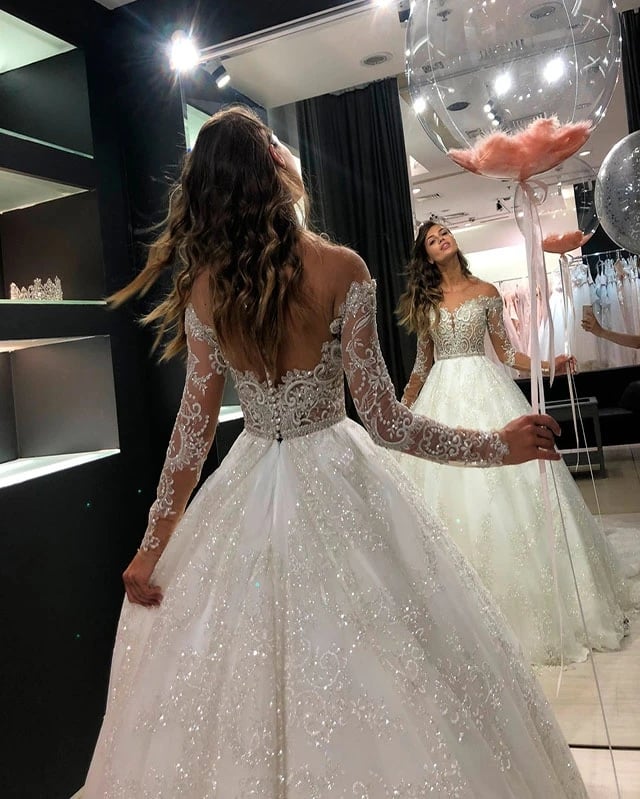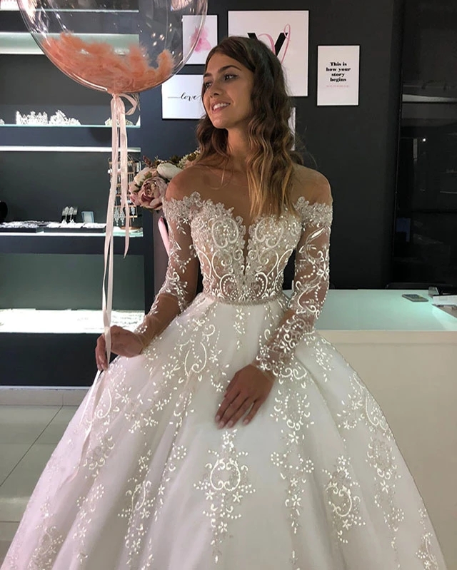 Romantic Ball Gown Long Sleeves Lace Wedding Dresses Bridal Gown