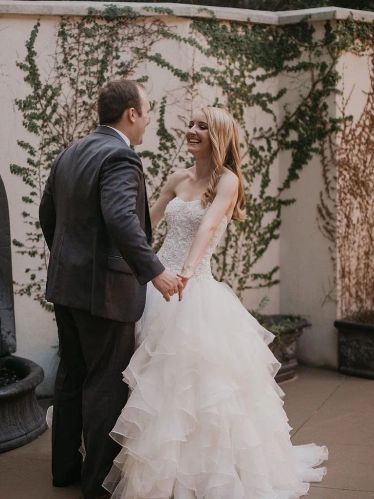 Simple Strapless Sweetheart Tulle Tiered Princess Wedding Dresses Gowns