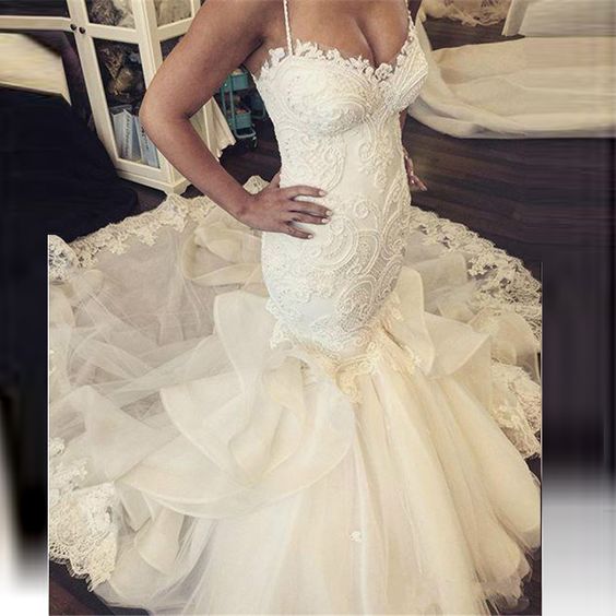 Gorgeous Mermaid Sweetheart Tulle Lace Wedding Dresses,Appliques Bridal Gown