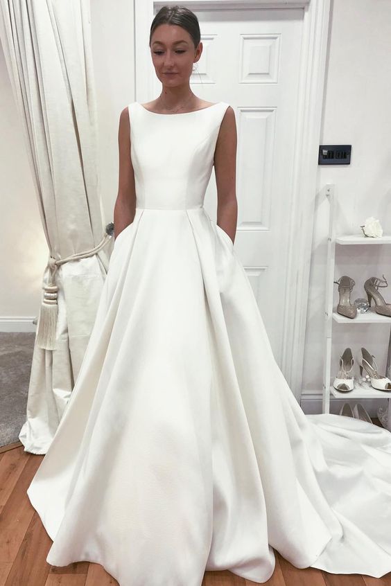 Sleeveless Satin Bride Dress with Pockets vestido de noiva 2020