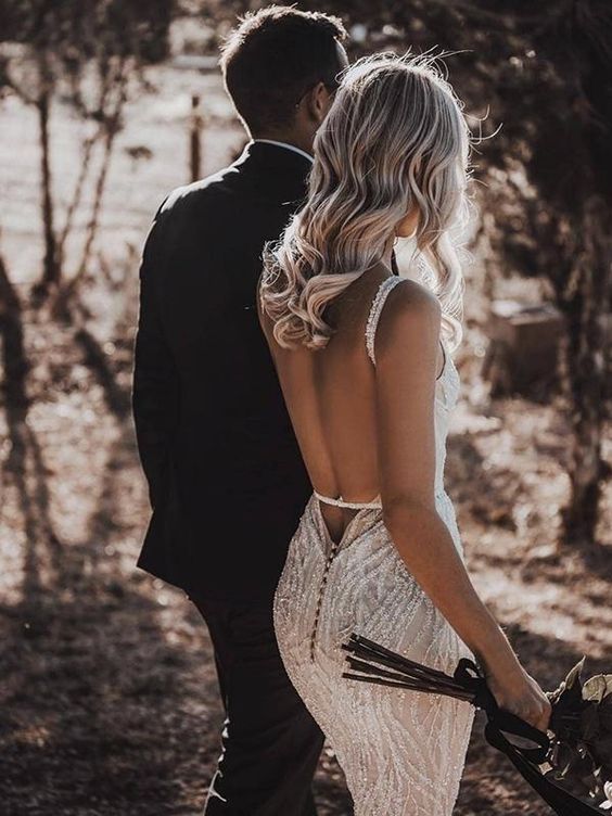 Marvelous Mermaid Square Neck Backless Sequins Wedding Dresses
