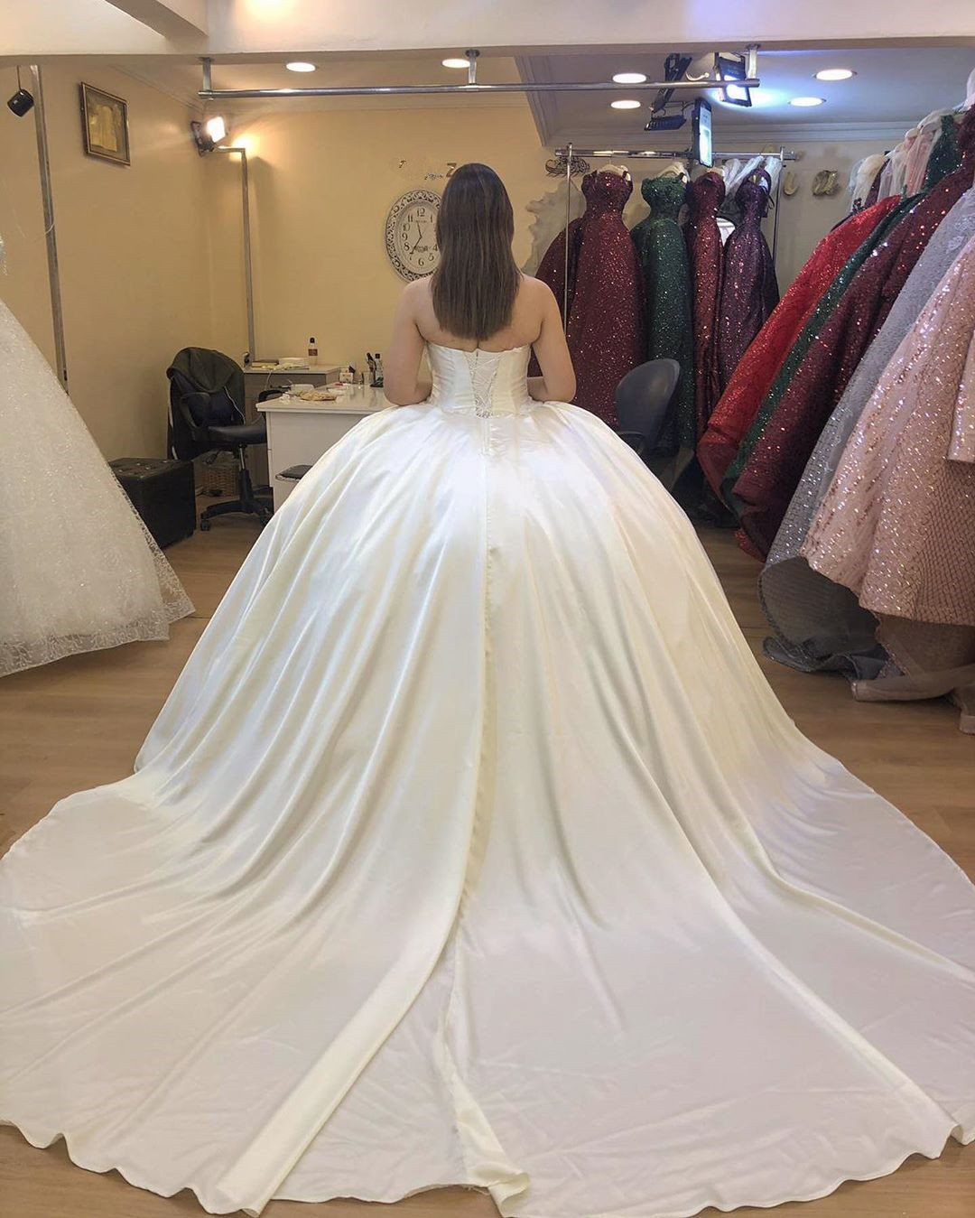 Ball Gown Sweetheart White Satin Wedding Dresses