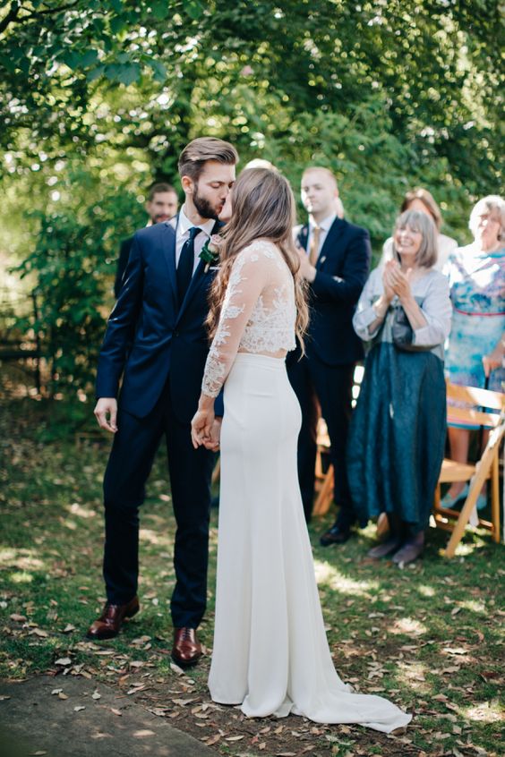 Elegant Two Piece Long Sleeves White Wedding Dresses