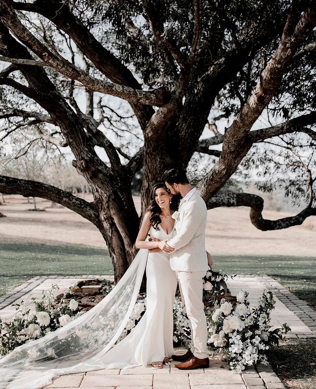 Glamorous Mermaid V Neck Cross Back White Satin Wedding Dresses
