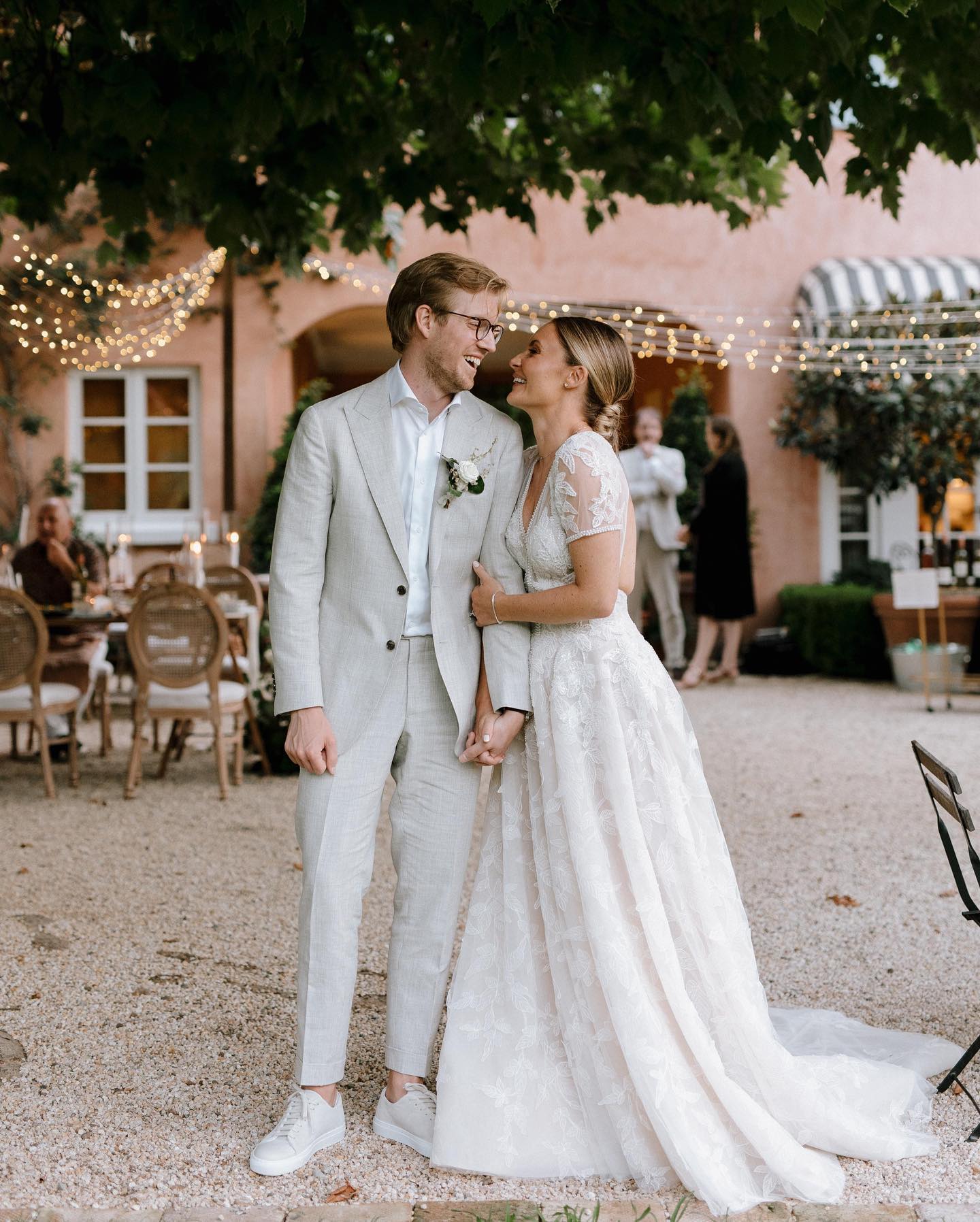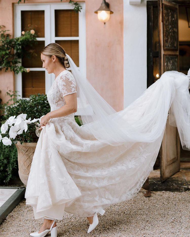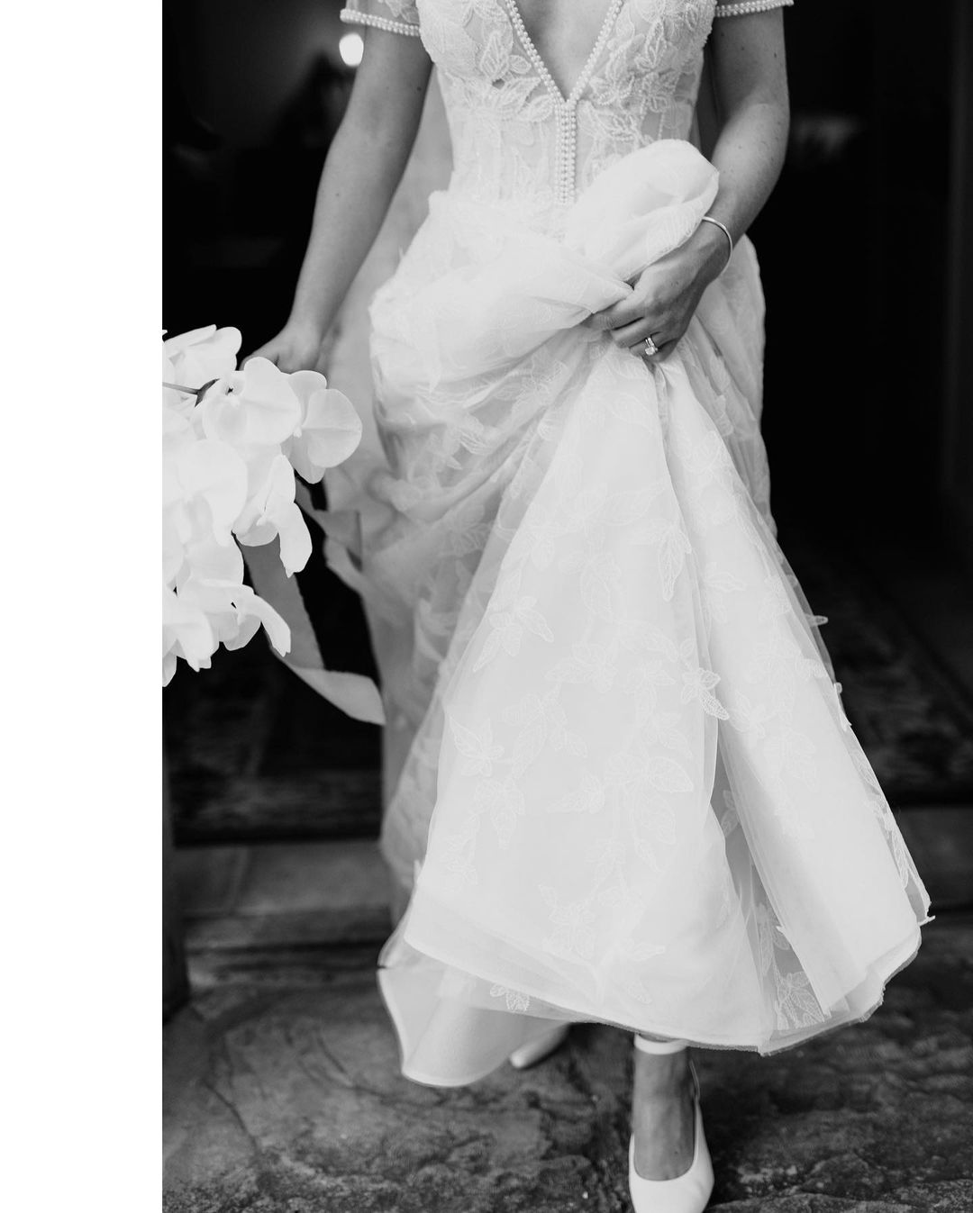 Stunning Ball Gown Deep V Neck White Lace Wedding Dresses