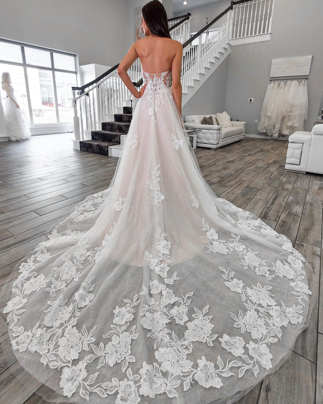 Charming Mermaid Sweetheart Sparkly Tulle Wedding Dresses with Appliques