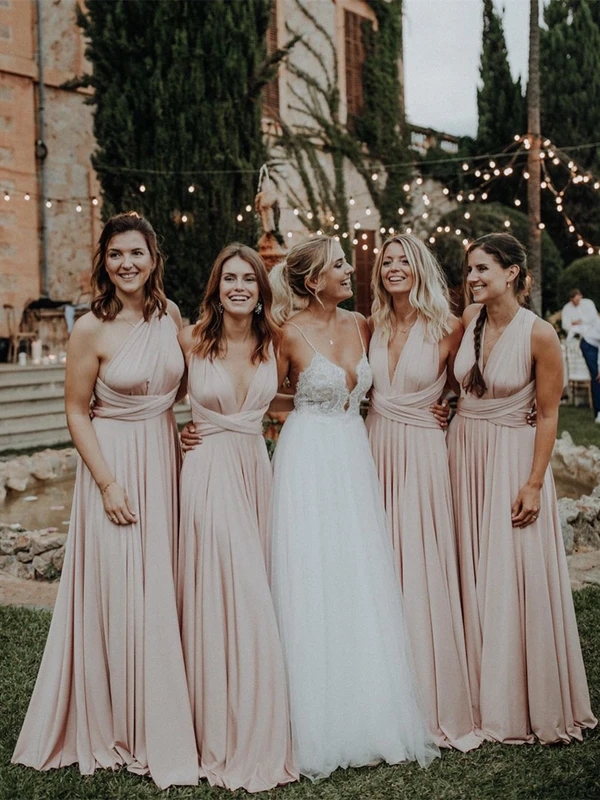 Multi A-Line Pink Chiffon Long Bridesmaid Dresses Evening Party Dresses