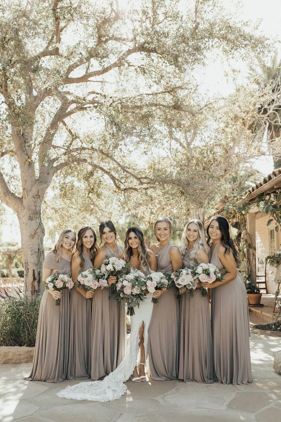 A-Line Light Brown Mismatch Bridesmaid Dress