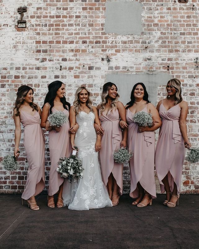 Simple Sheath V Neck Blush Pink Boho Bridesmaid Dresses with Belt