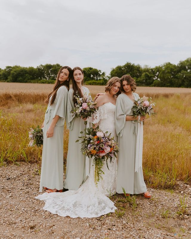 Beautiful A-Line V Neck Saga Chiffon Boho Bridesmaid Dresses