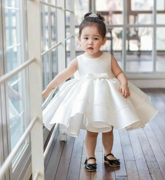 Pretty A-Line Round Neck SatinFlower Girl Dress with Bow