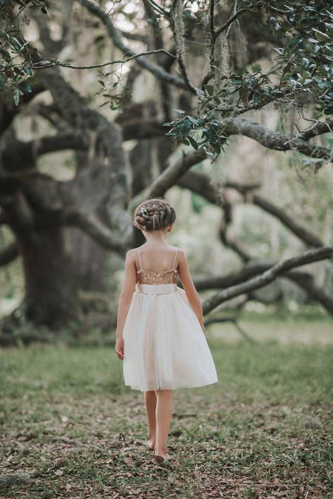 Pretty V Neck Sequin Tulle Knee Length Flower Girl Dress with Belt Bow