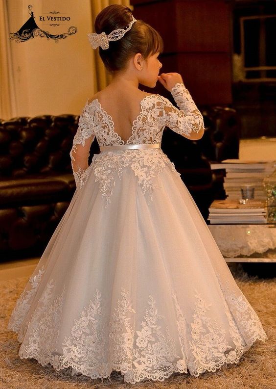 Cute Long Sleeve Tulle Flower Girls Dresses for Wedding Party