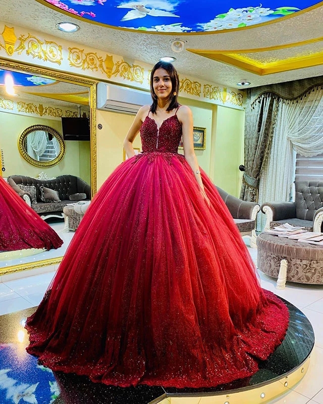 Shiny Ball Gowns Prom Dresses Bling Bling Spaghetti Straps Quinceanera Dresses
