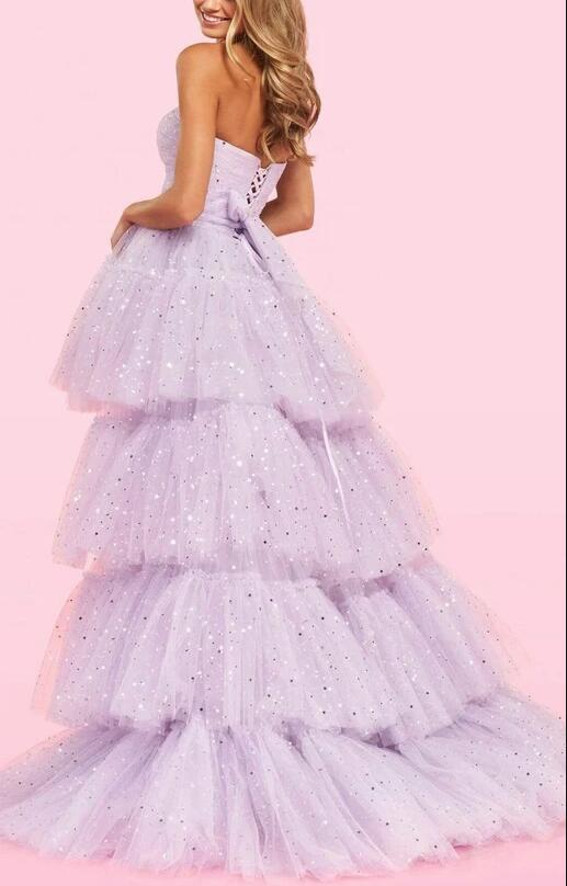 Glitter Ball Gown Strapless Lavender Tiered High Low Gown,Quinceanera Dresses