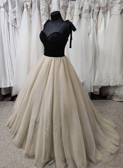 Princess Sweetheart Black Velvet Long Tulle A Line Prom Dress, Graduation Dress