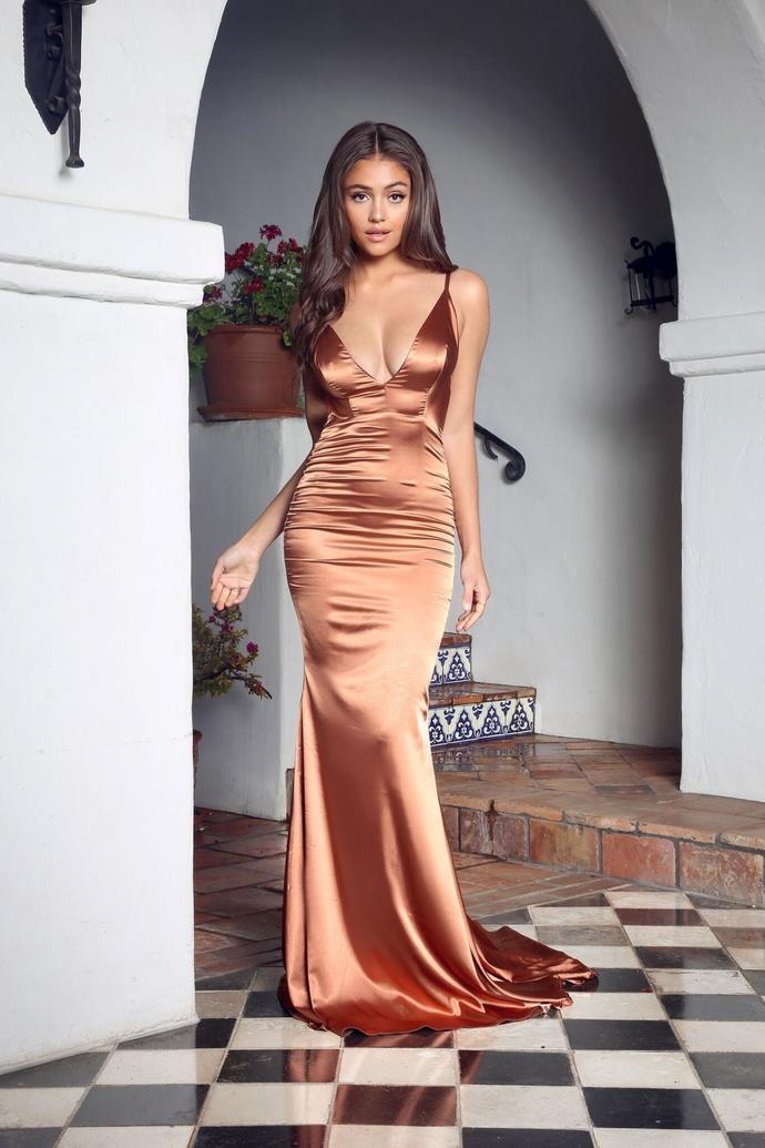 Open Back Prom Dress with Deep V Neckline Evening Party Dresses