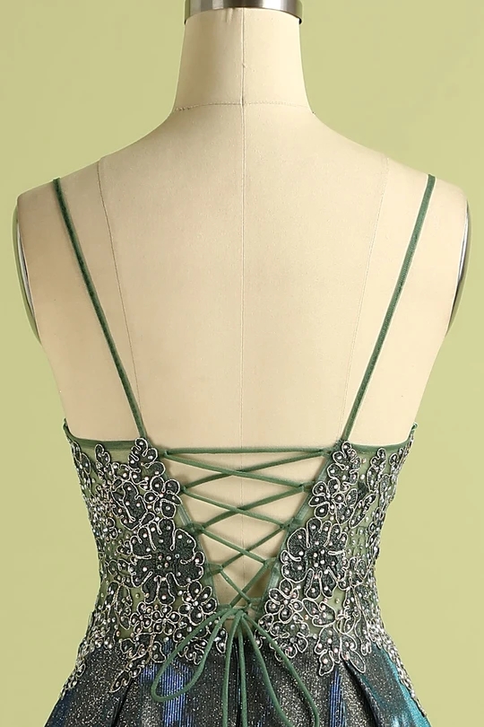 Sequins A Line Prom Dress Custom Spaghetti Straps Evening
