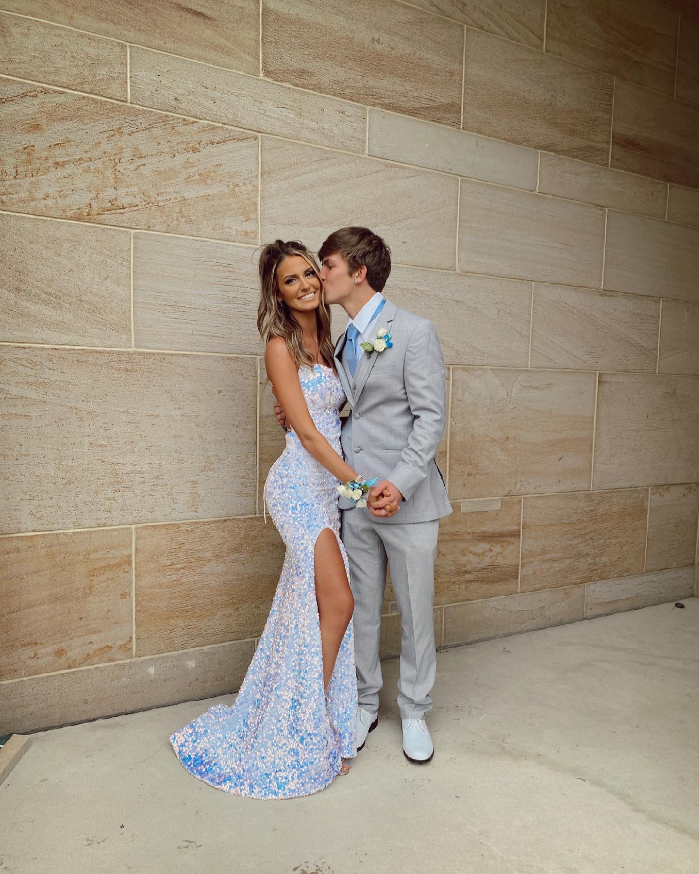 Sparkly Mermaid Scoop Neck White Sequins Long Prom Dresses with Slit