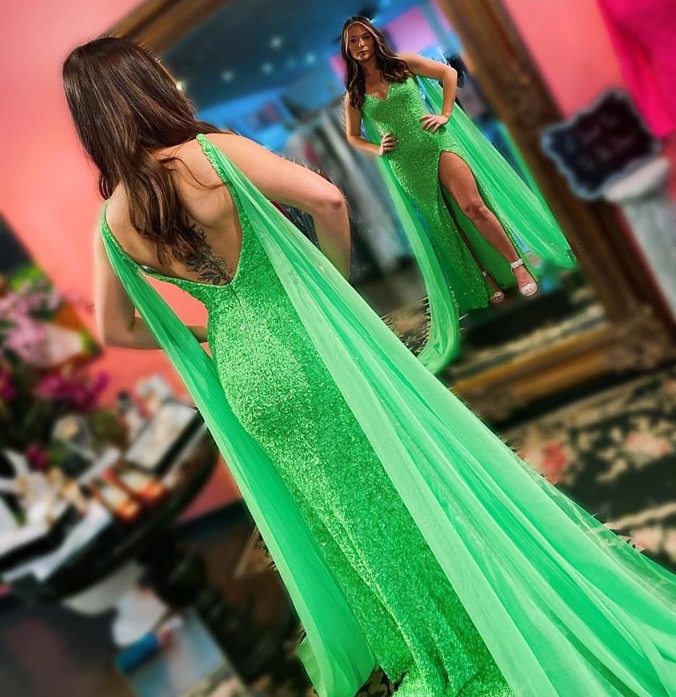 Sparkly Mermaid V Neck Green Sequin Long Prom Dresses