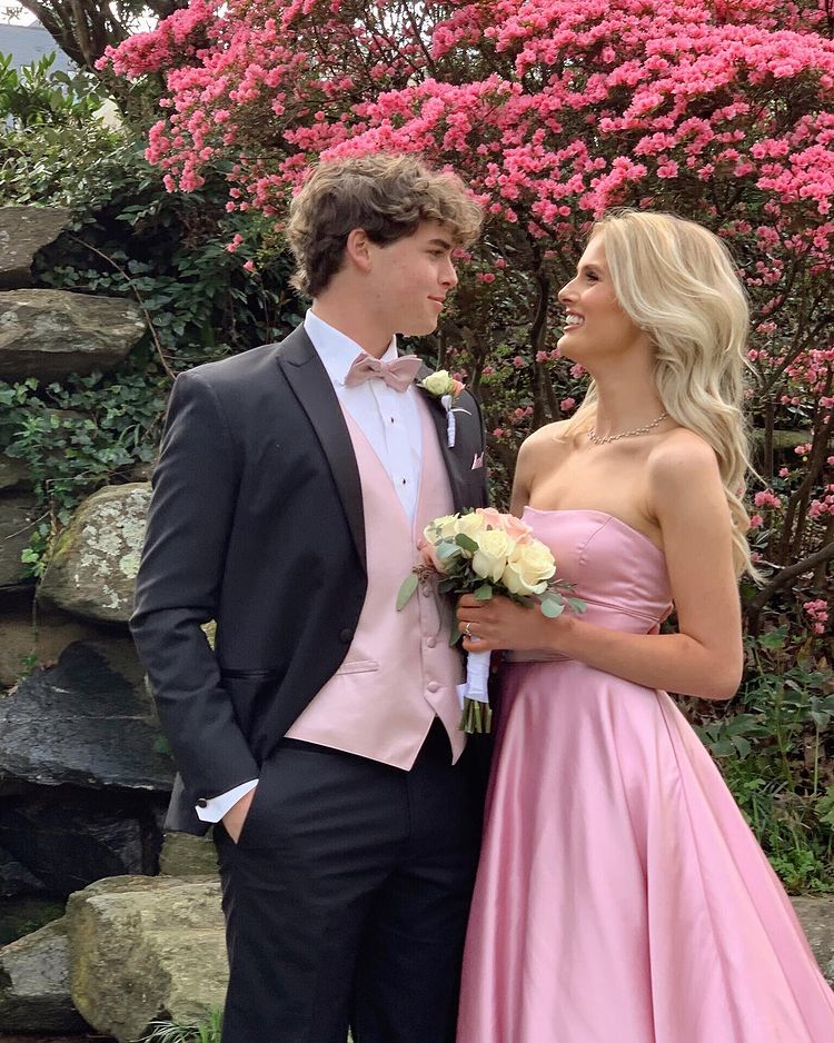 Ball Gown Strapless Pink Satin Long Prom Evening Dresses Formal Party Dresses