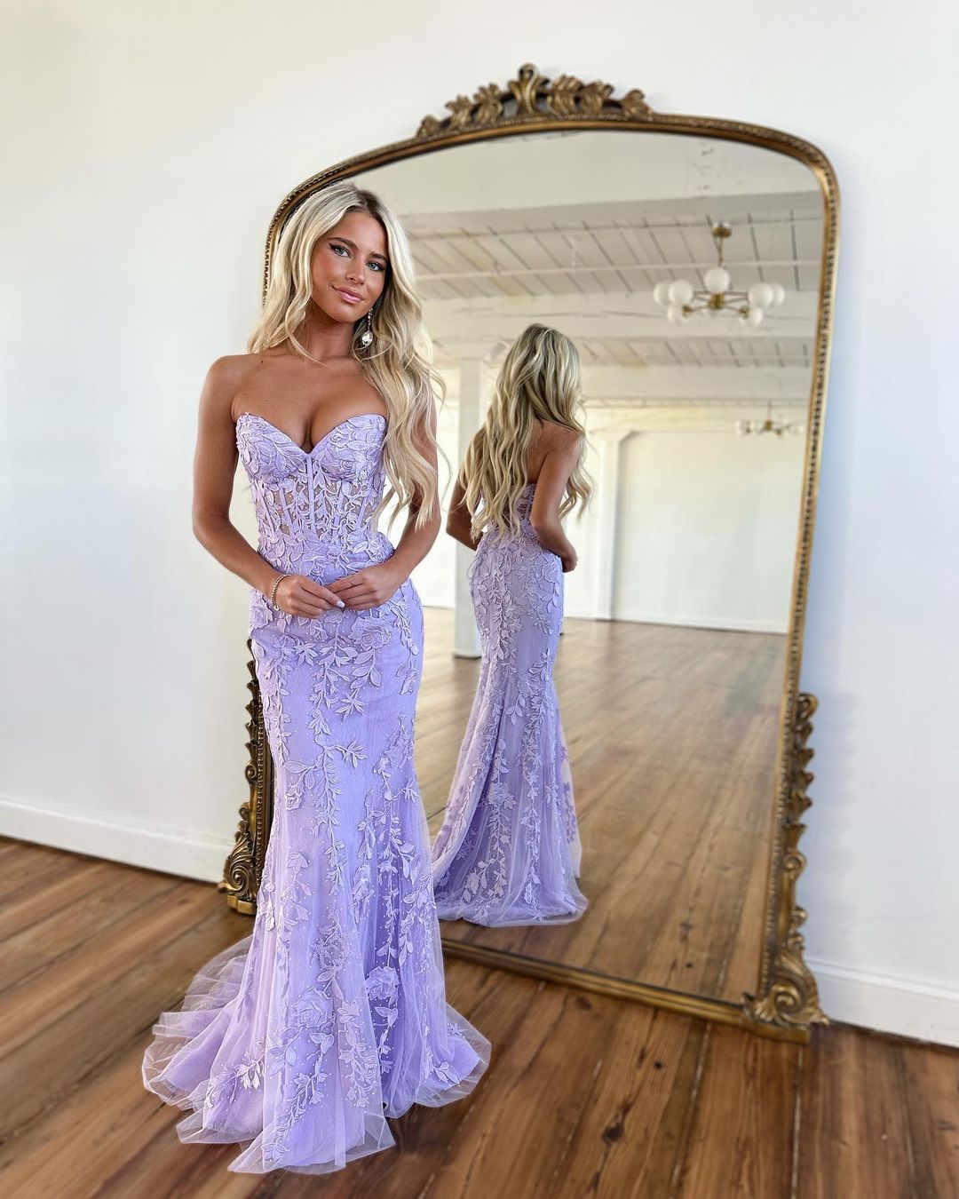 Cute Mermaid Sweetheart Lavender Lace Prom Dresses