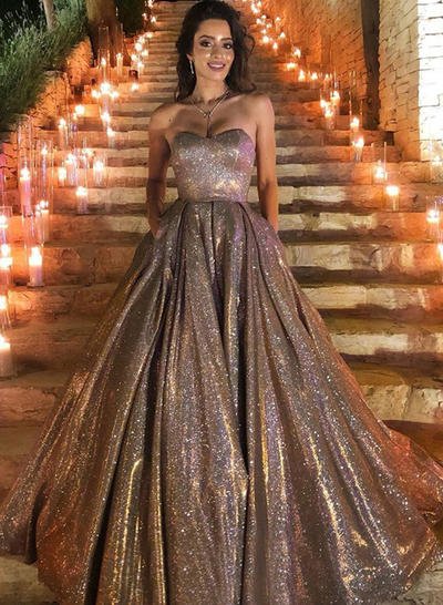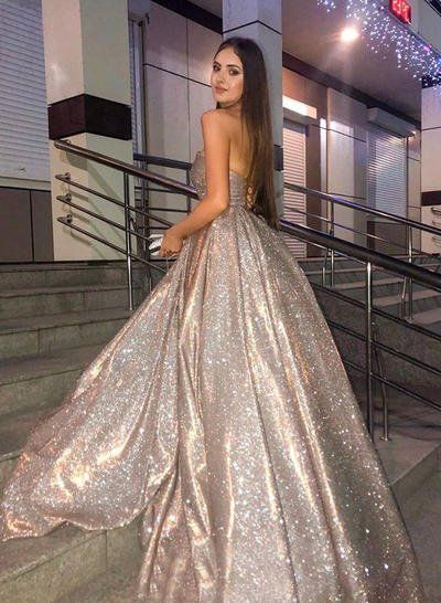 Sweep Train Strapless Sequined Ball-Gown Prom Dresses