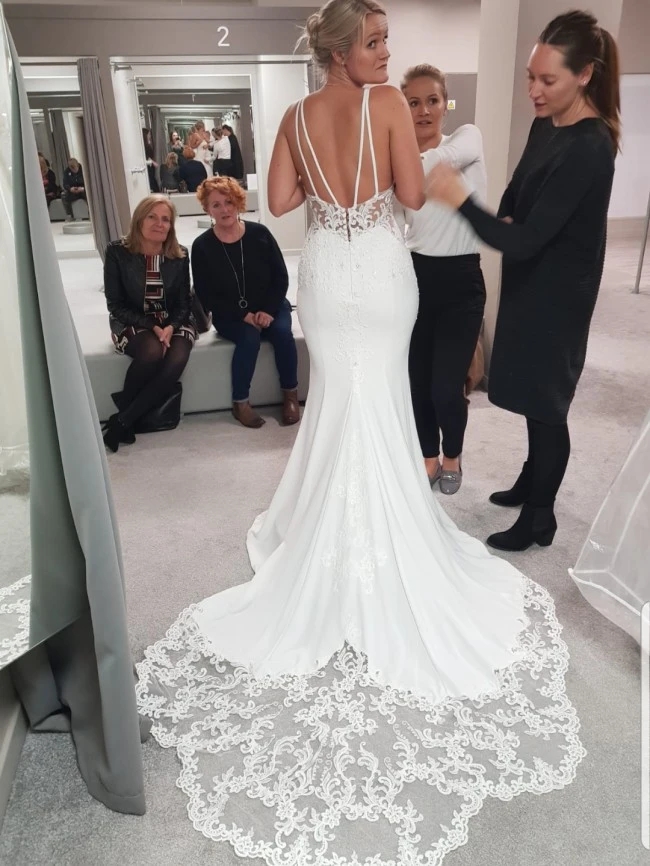 Elegant Mermaid Sweetheart Satin Lace Wedding Dresses with Train