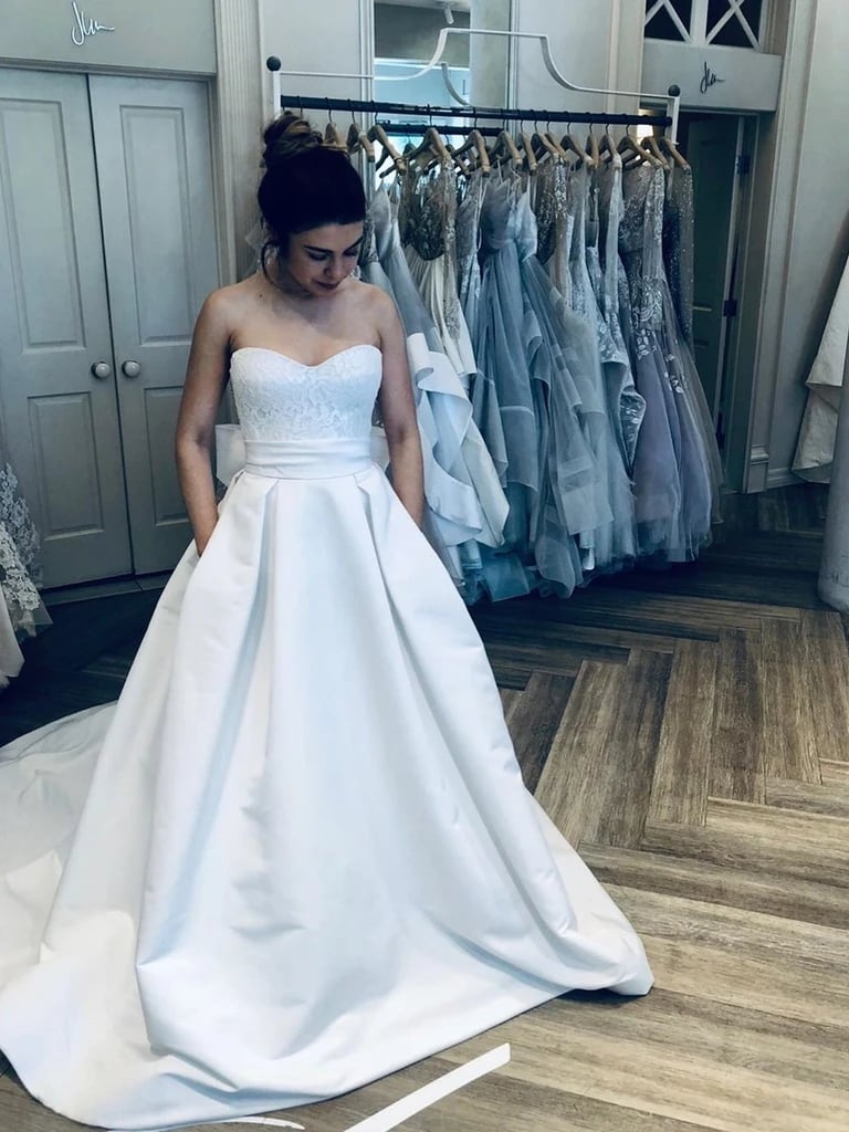 Simple Satin Off-The-Shoulder Princess Wedding Dresses A-line Strapless Bridal Gowns