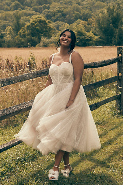 Tea Length Sweetheart White Tulle Wedding Dresses