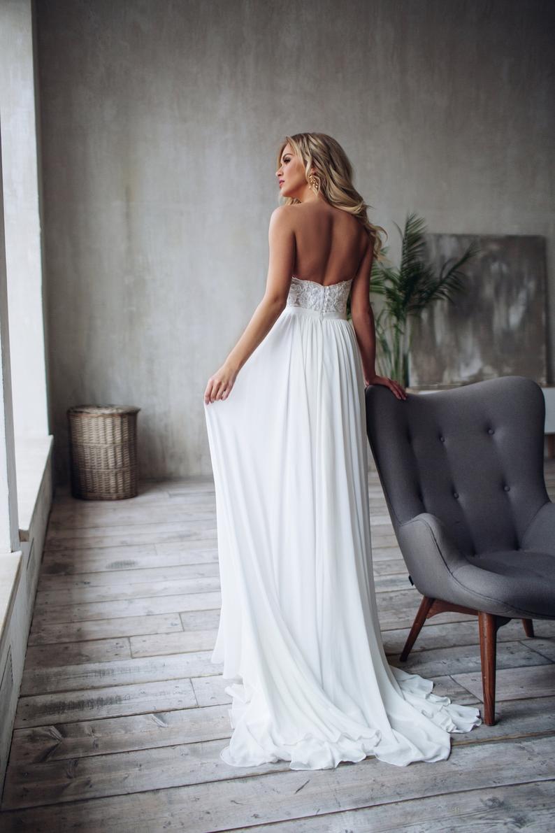 A-Line Sweetheart Open Back White Chiffon Beach Wedding Dresses with Split