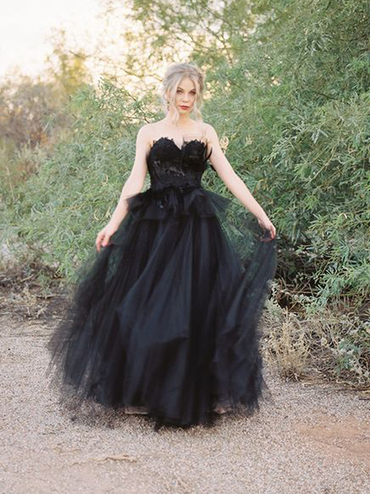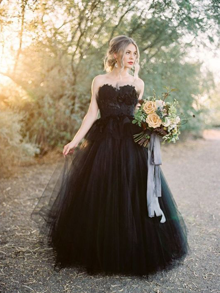 Unique A-Line Sweetheart Black Wedding Dresses,Tulle Lace Wedding Gowns