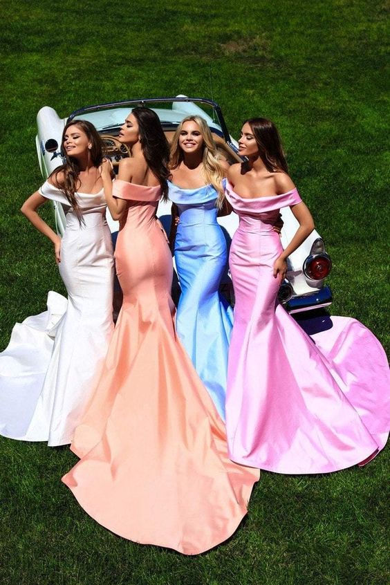 Off the Shoulder Prom Dresses,White Satin Evening Dresses,Custom Made Evening Party Dress