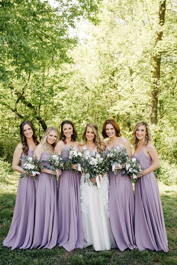 Cheap A-Line V Neck Lilac Chiffon Long Bridesmaid Dress Under 100