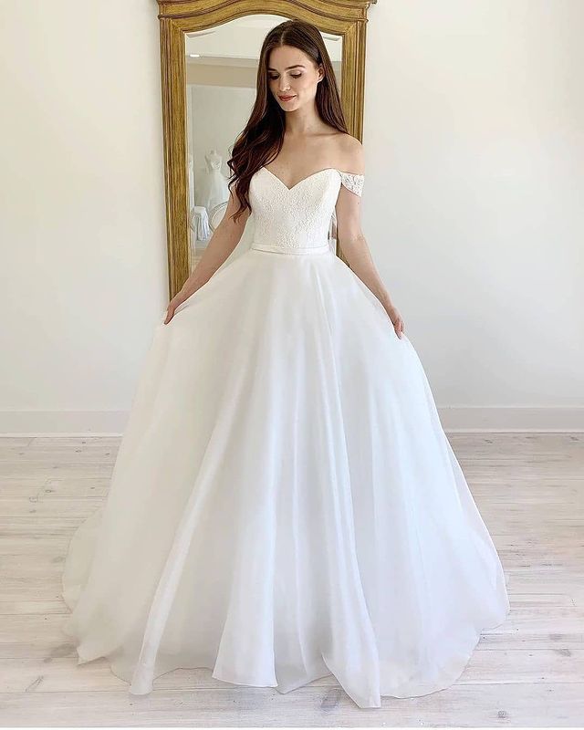 Ball Gown Off the Shoulder Tulle Lace Wedding Dress