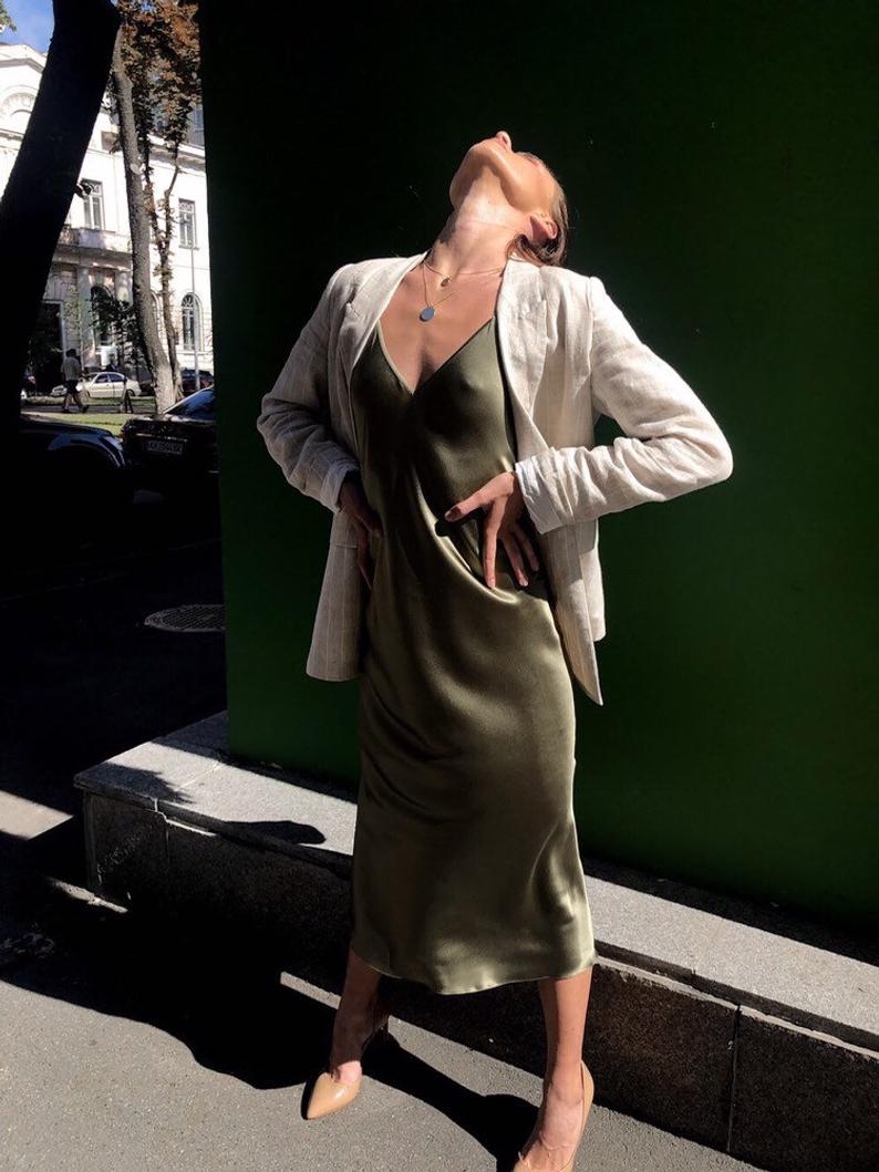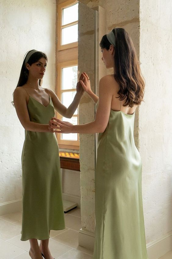 Simple V Neck Green Silk Satin Prom Dresses Evening Party Dresses