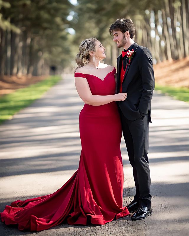 Charming Mermaid Off the Shoulder Dark Red Satin Long Prom Dresses Evening Party Dresses