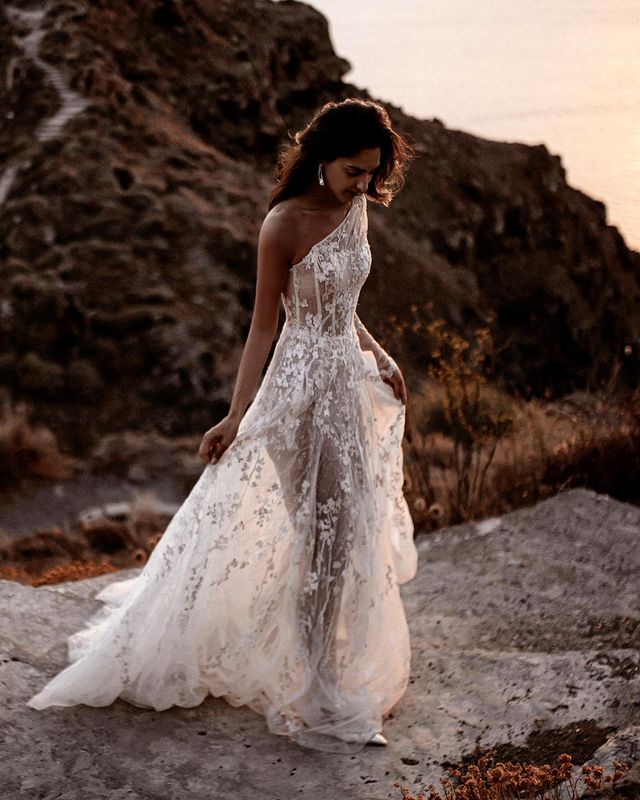 One Shoulder White Lace Beach Wedding Dresses 2020-2022