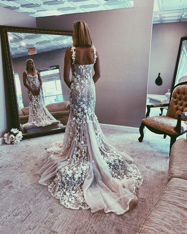 Mermaid Sweetheart Lace Wedding Dresses with Train