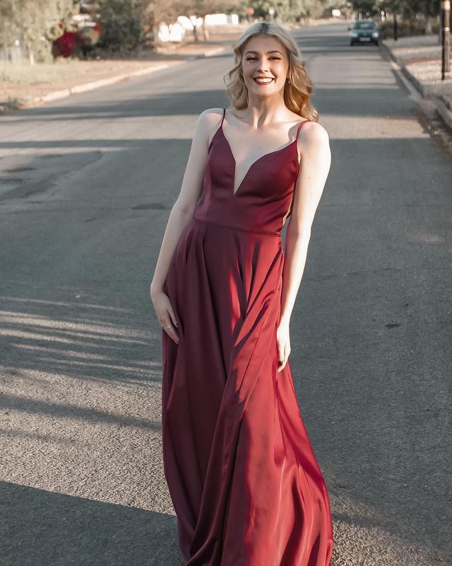 Elegant A-Line V Neck Burgundy Silk Satin Long Prom Dresses