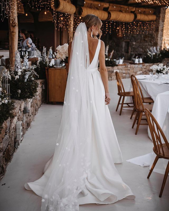 Vintage A-Line V Neck Satin Wedding Dresses with Slit