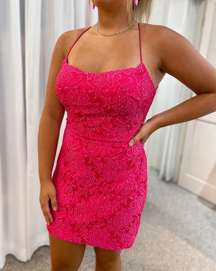 Hot Pink Short Homecoming Dresses with Lace Beaded