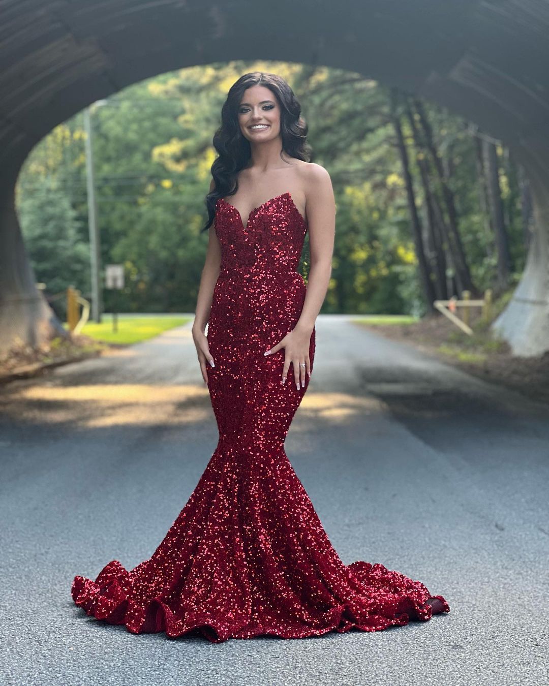 Cute Mermaid V Neck Burgundy Sequins Prom Dresses