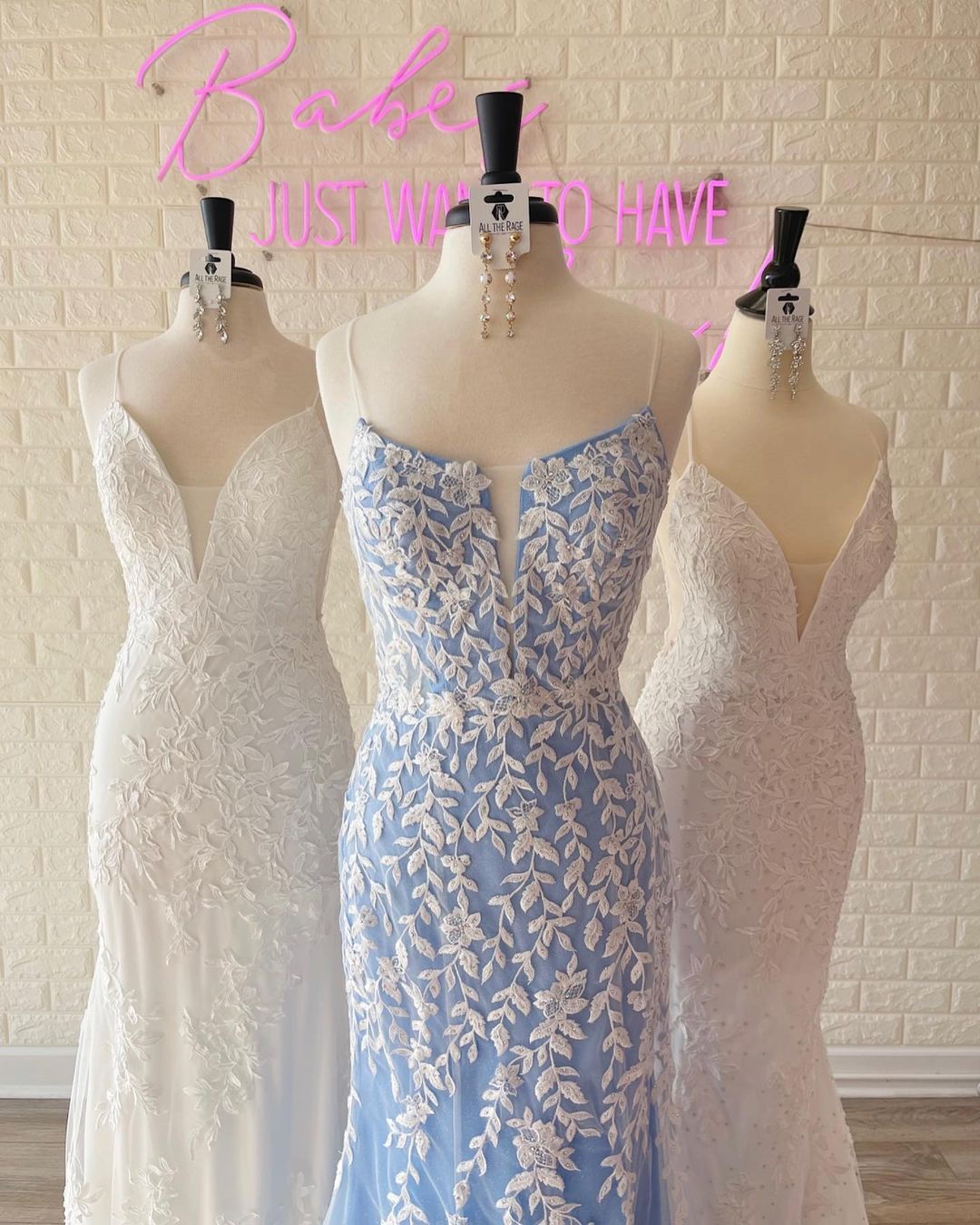 Cute Mermaid Sweetheart Blue White Lace Prom Dresses